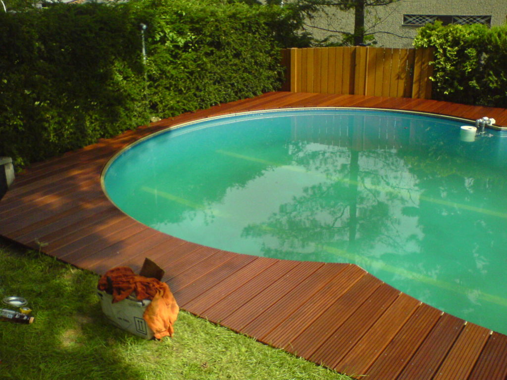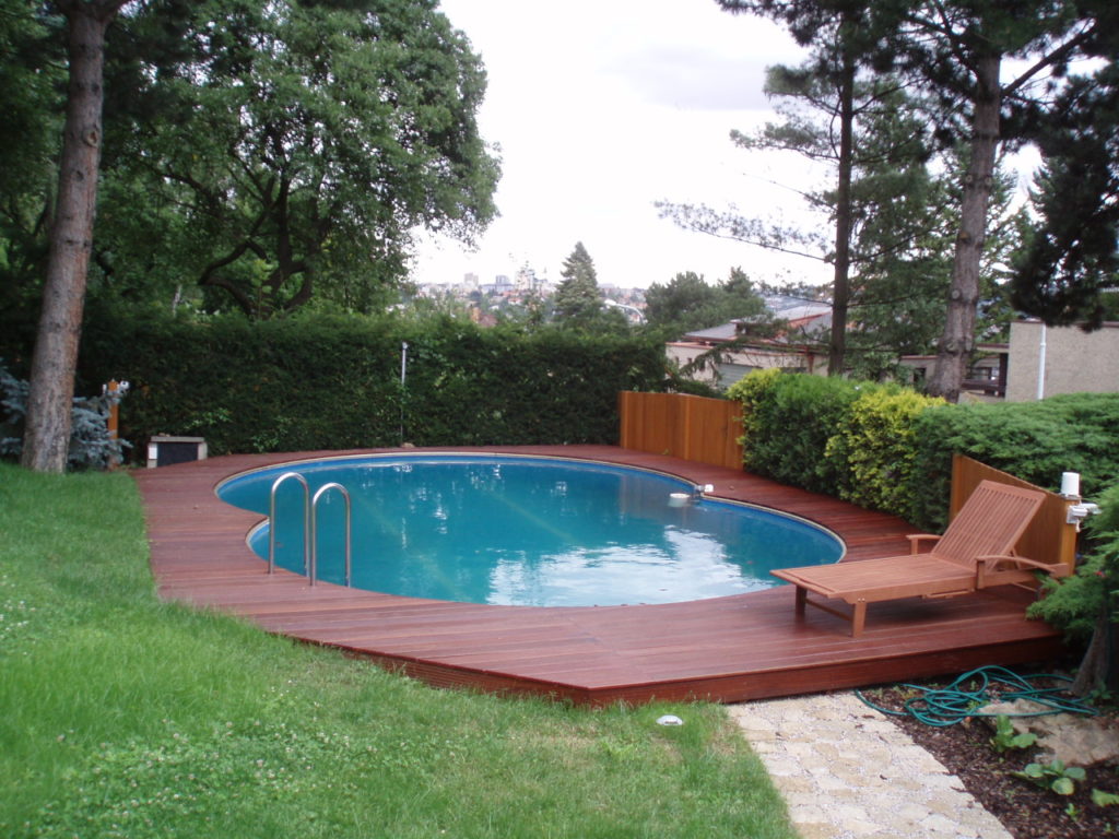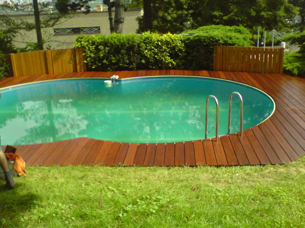 Terasa a schody kolem bazénu